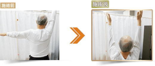 その後に二回三回と続けてお世話になるうちに、痛みもとれ自然に腕も上がるようになりました。それを機会に職業上のいろいろな体のトラブルも改善して頂き大変感謝しております。
